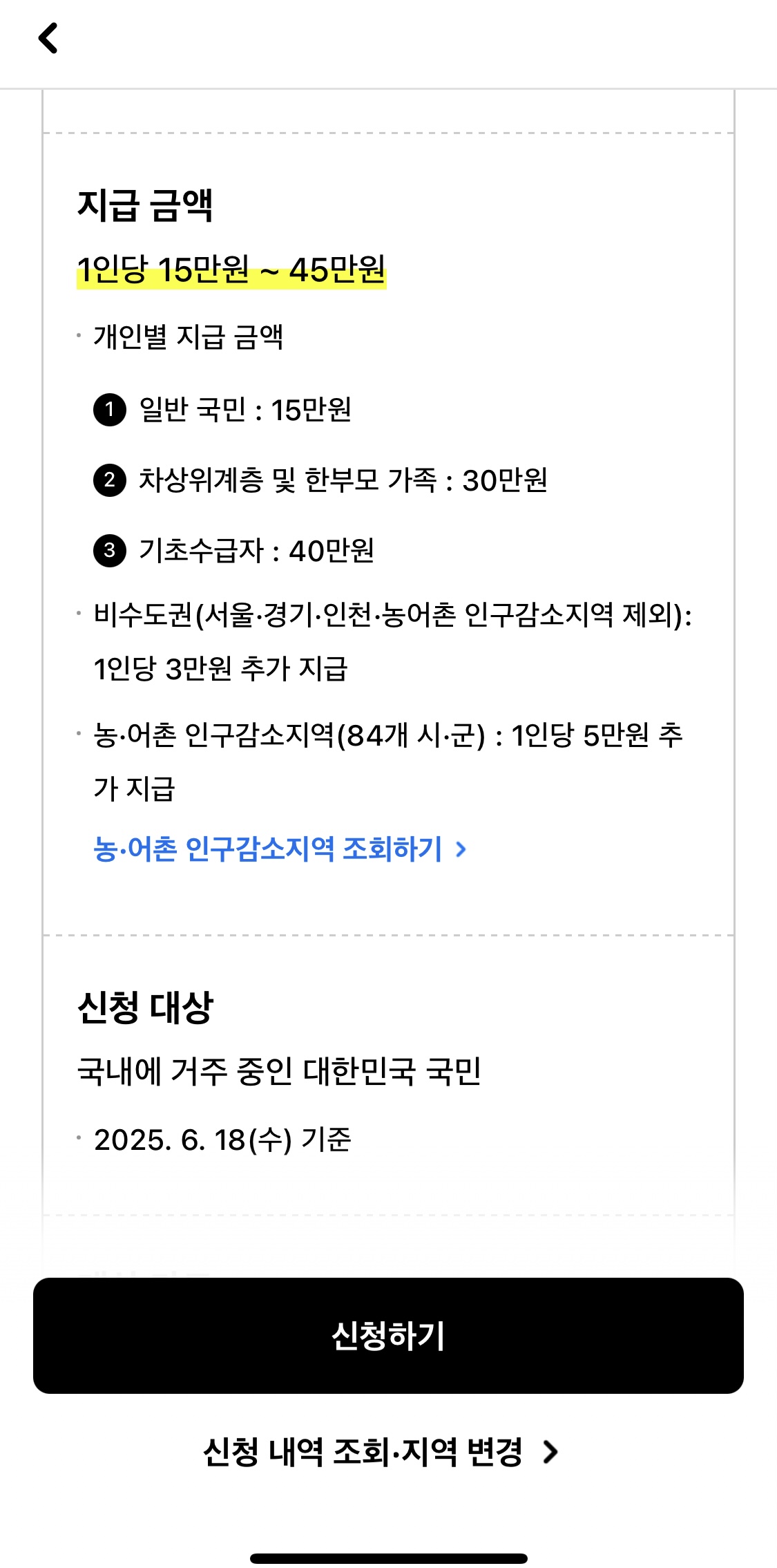 민생회복 소비쿠폰 지원금액, 신청방법, 사용처, 주의사항 등 추가적인 상세한 내용은 제가 그 전에 아주 상세히 포스팅해 놓았으니 아래 링크 확인해 보시면 됩니다^^