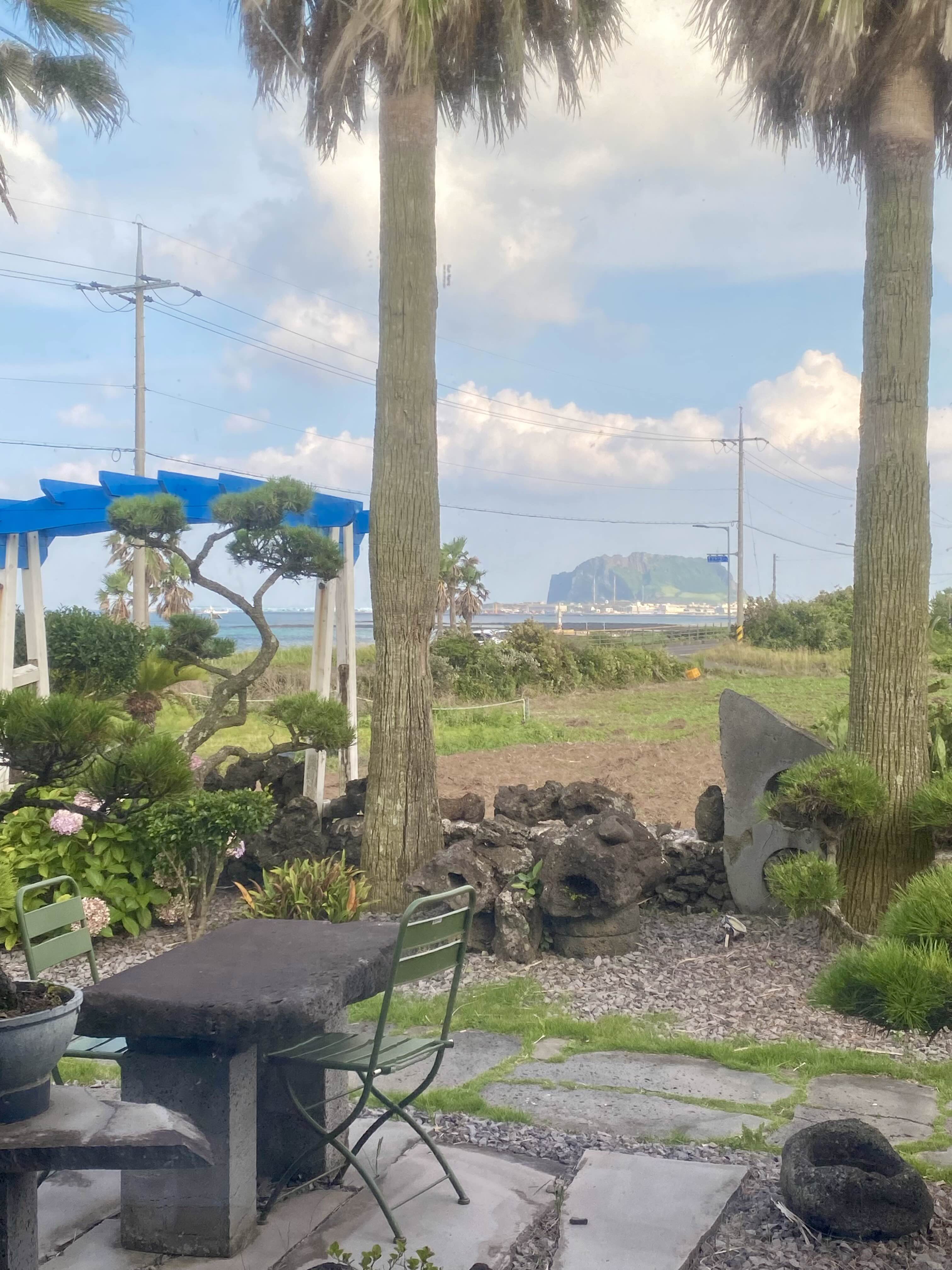 숙소 입구 바로 정면을 바라보면 성산일출봉, 바다가 같이 눈앞에서 펼쳐져 눈 호강 제대로 할 수 있습니다.